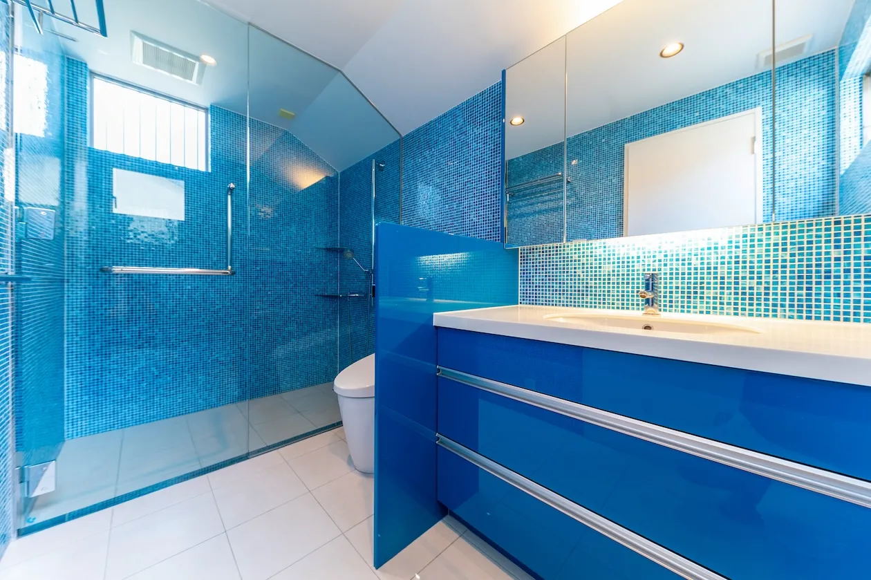 色鮮やかなタイルが張られたシャワールームや、広々とした収納も魅力的です。