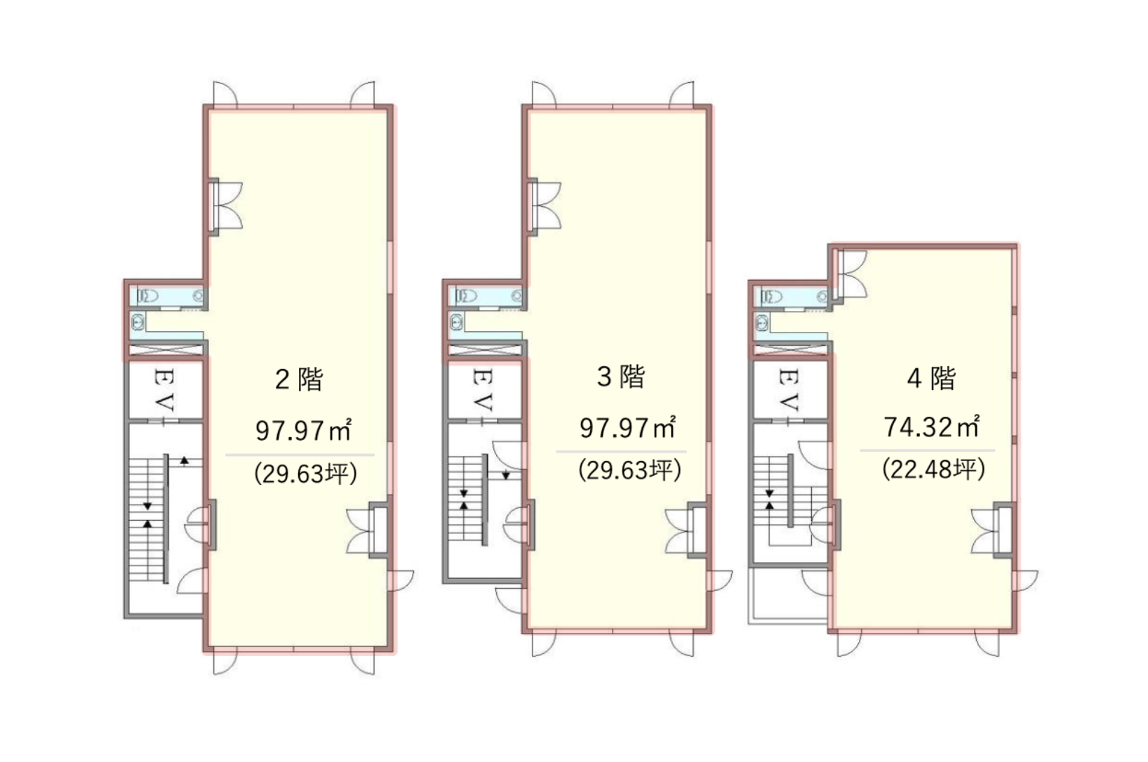まだ入居中のため室内の写真はありませんが、長方形のシンプルな間取りで、使い勝手は特に問題ないかと思います。同時に3フロア空くため、まとまった広さを求める方にもおすすめです。