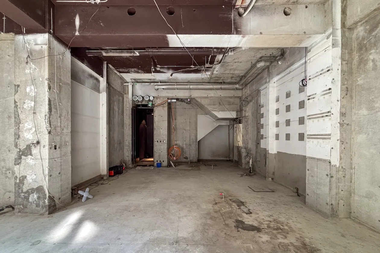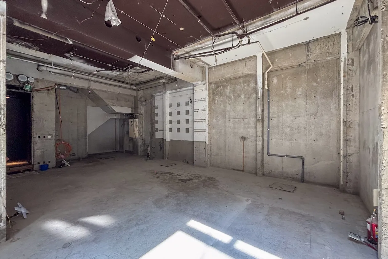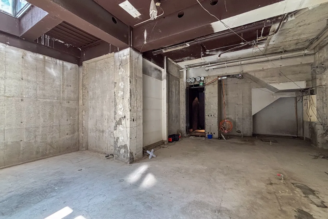 オートロックはなく、そのままダイレクトに地下へ階段で降りると、天井高約4mの大きな空間が広がります。L字型の区画は約72㎡。平米数以上に空間が広く感じます。