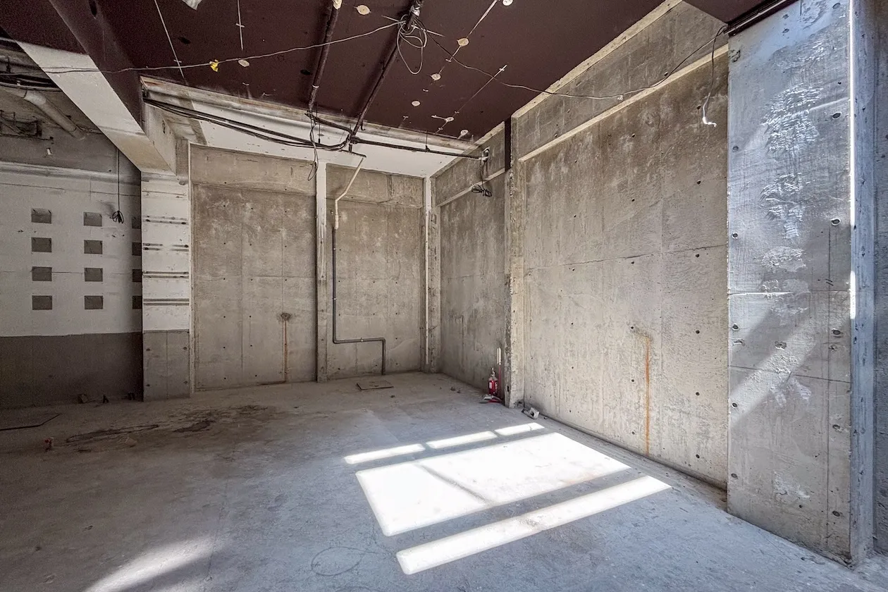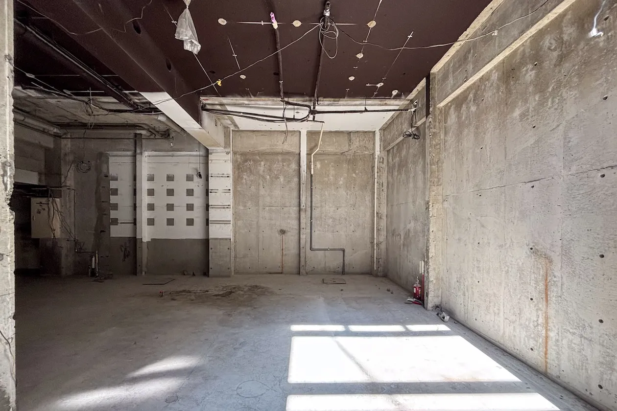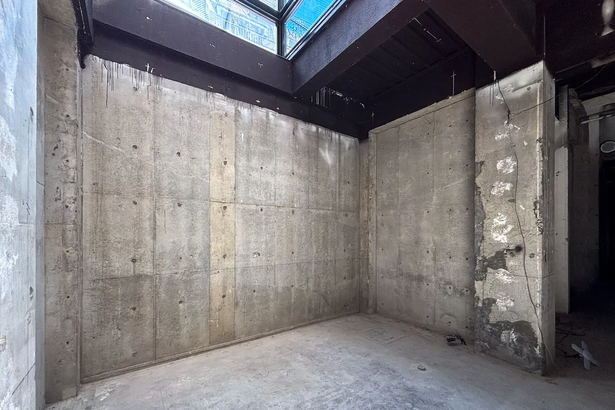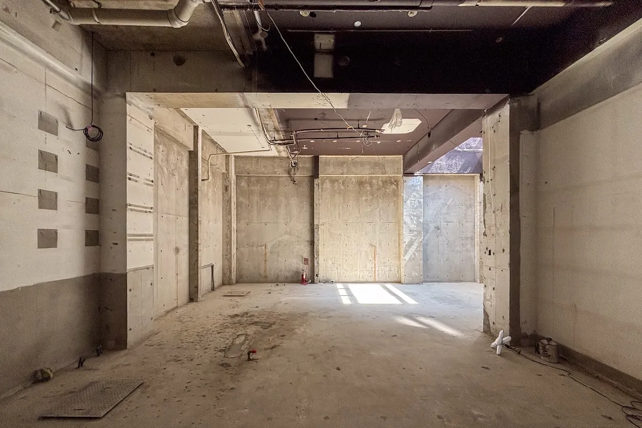 オートロックはなく、そのままダイレクトに地下へ階段で降りると、天井高約4mの大きな空間が広がります。L字型の区画は約72㎡。平米数以上に空間が広く感じます。