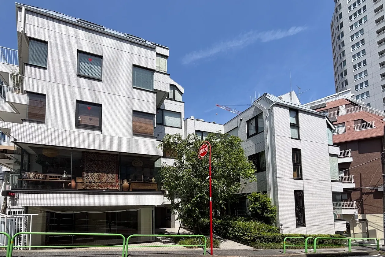 最寄りは外苑前駅。外苑西通りの老舗セレクトショップと、北欧家具ブランドのショップのある交差点から、みゆき通り方面へ入った坂道の途中に立地しています。表参道駅からも歩いて10分ほどです。