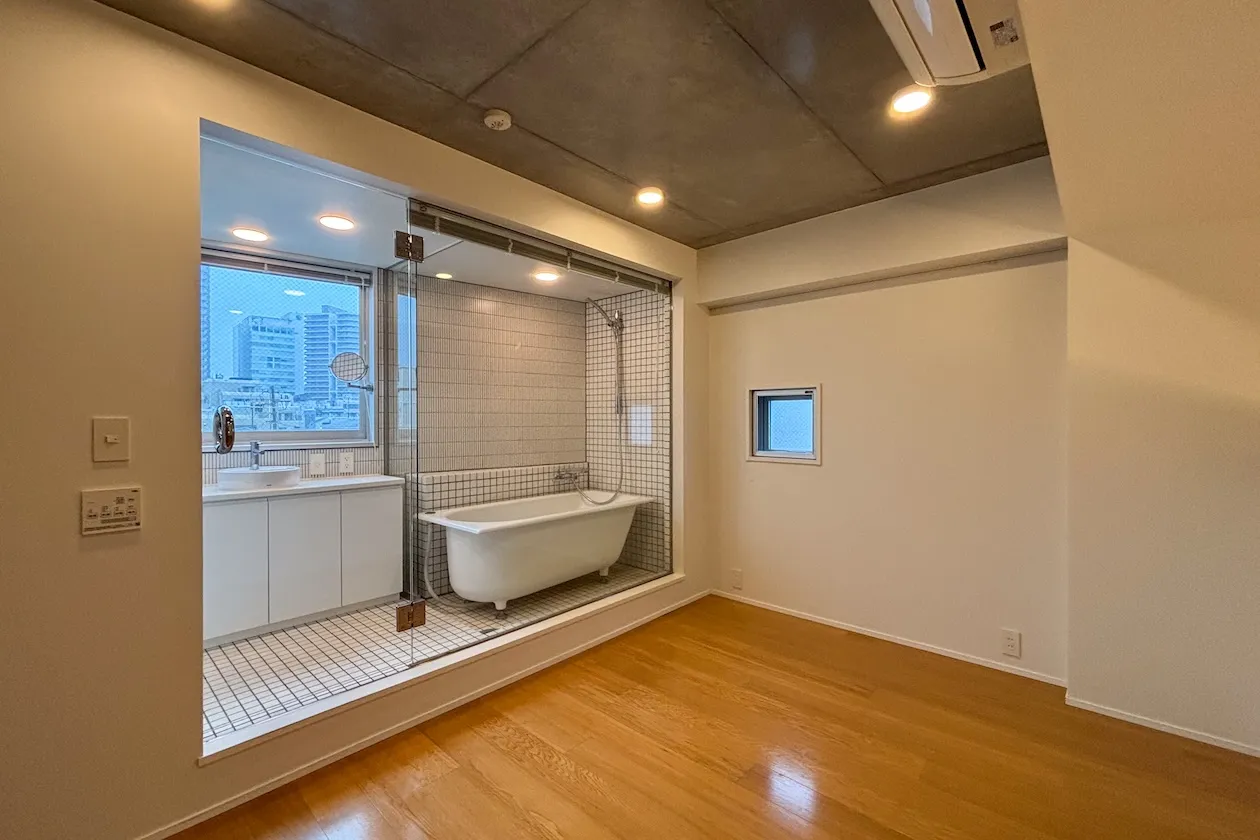 4階部分は6畳の洋室にガラス張りのバスルームがあり、プライベートスペースとして使用する空間として使いやすいのではないかと思います。動線を考慮し3階部分にトイレがあるというのもポイントが高いです。