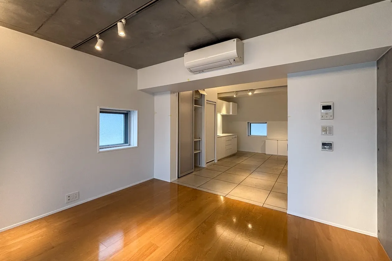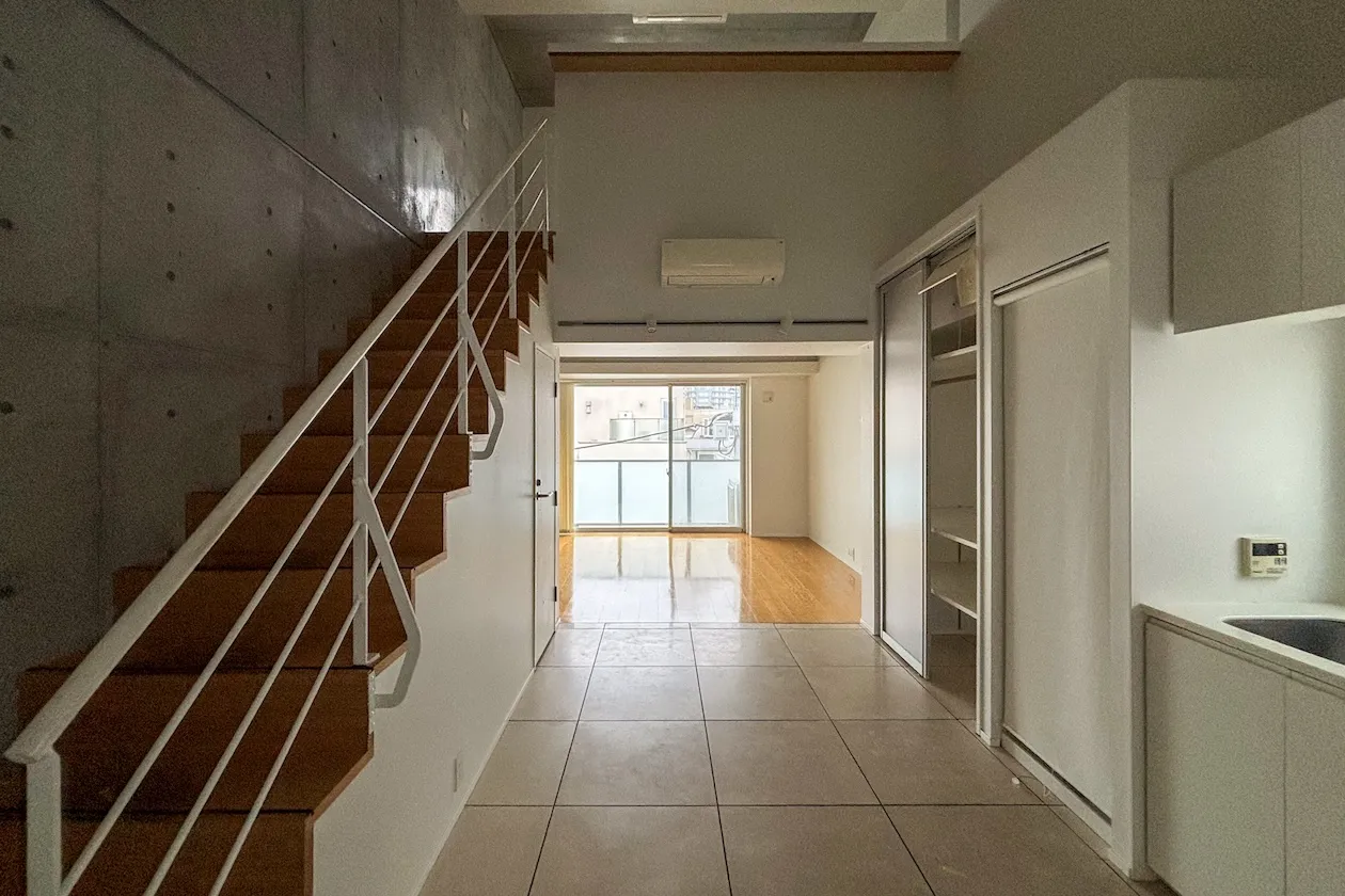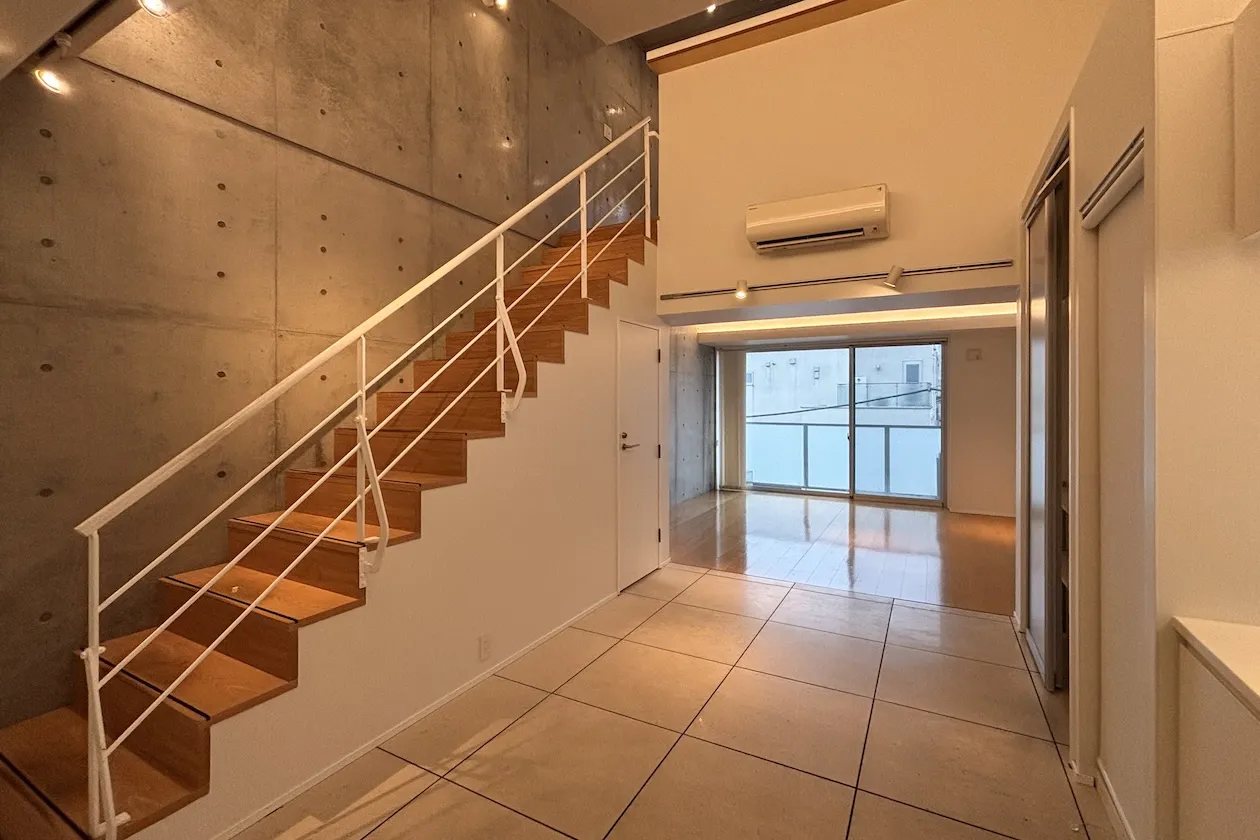 今回ご紹介するのは、2016年に誕生したデザイナーズマンションの最上階角部屋。建物内では数少ないメゾネットタイプの区画です。