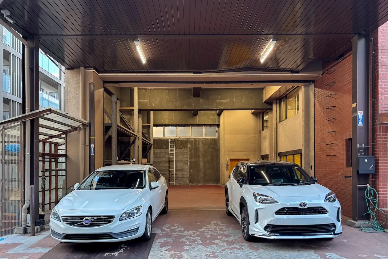 シャッター前のスペースは駐車場として使用可能。屋根もあり使い勝手も良いのではないかと思います。近隣商業地域でエリア的には用途は柔軟ですが、建物上層階が住居であることや、近隣にマンションも多いため、音や使用方法については配慮が必要です。ただ魅力的なこの空間、ご希望の用途があればぜひ一度お問い合わせくださいませ。