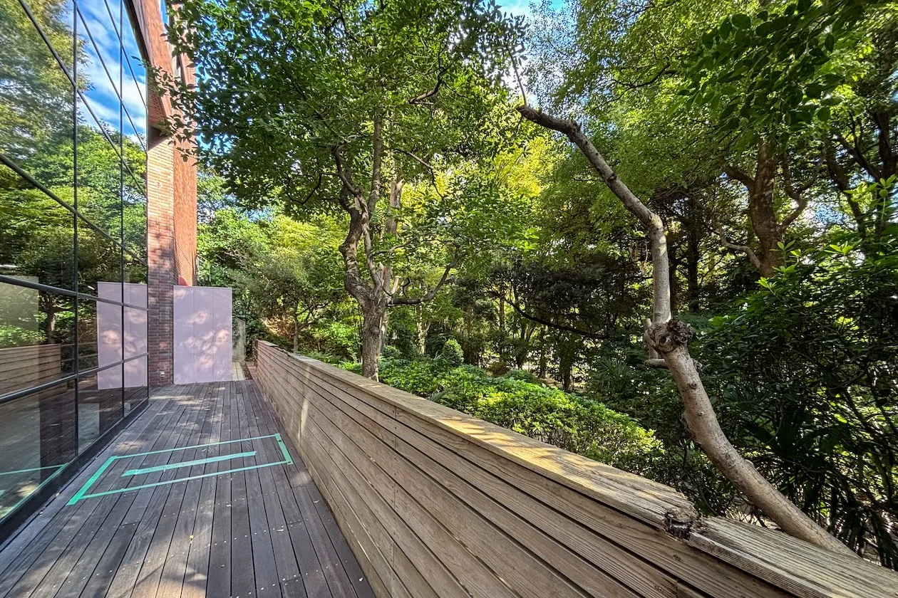 大きな窓面の先にはテラスがあります。視界には公園の緑が広がり、都心にいることを忘れてしまいそうです。現在テラスの改修を計画しており、さらに快適な空間となることが期待されます。