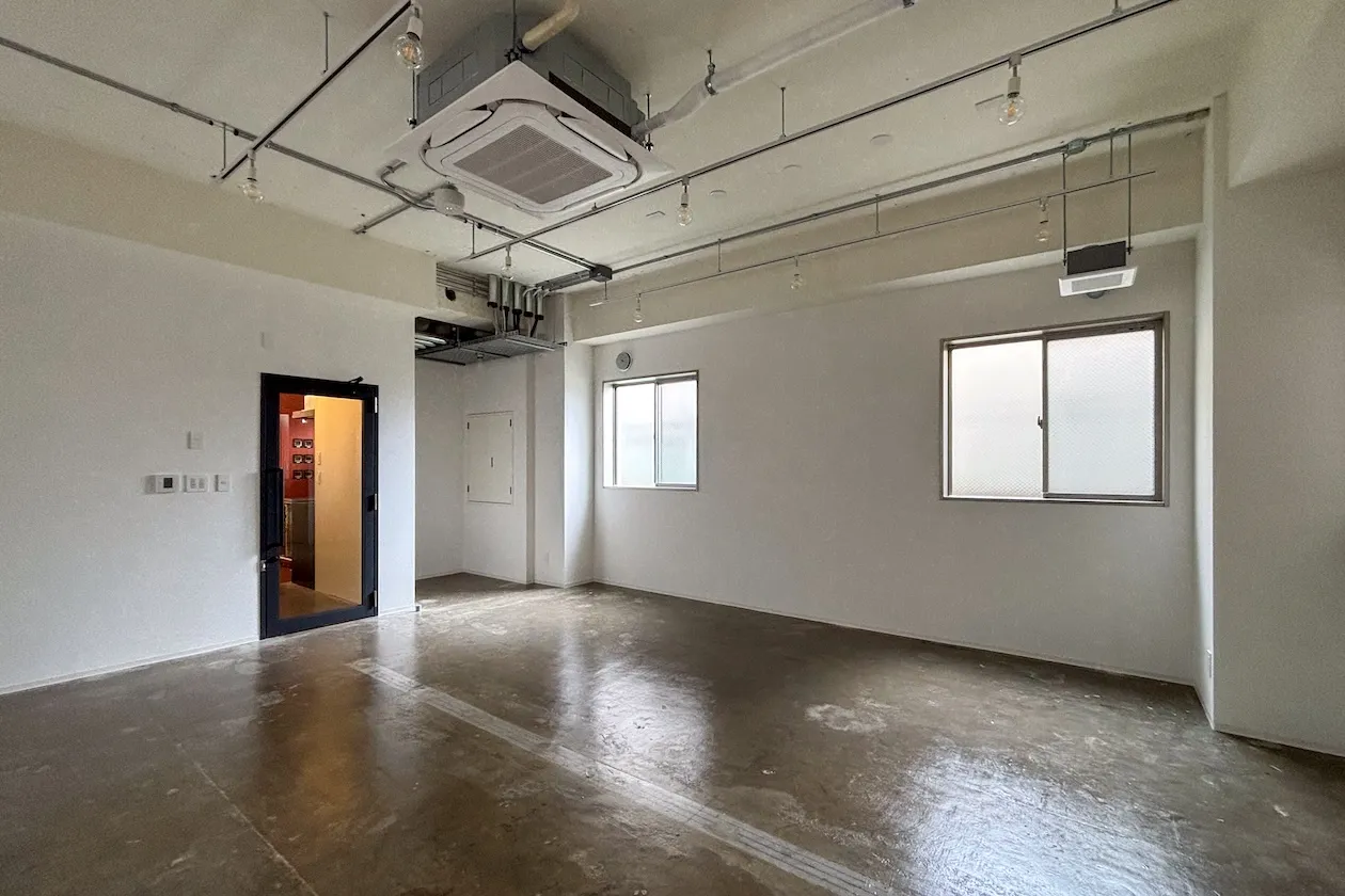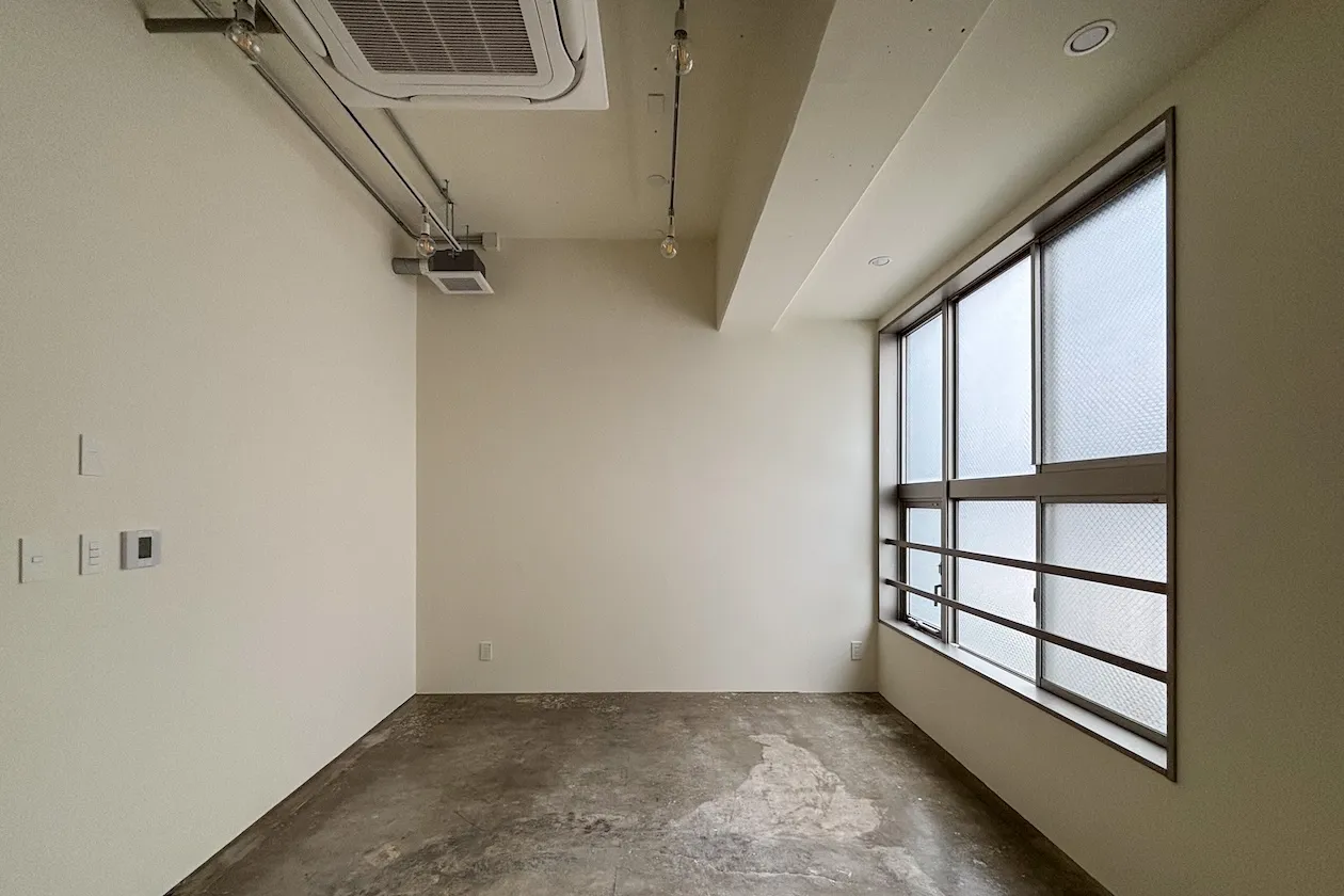 床はコンクリート面にクリア塗装が施され艶があり、また壁と天井は白で仕上げられています。基本的には3,4階と同じテイストの空間です。ただ2階の方が天井が高く、お部屋によって若干の差はありますが、3.2m前後は確保されています。写真で見るより高く感じるのではないかと思います。