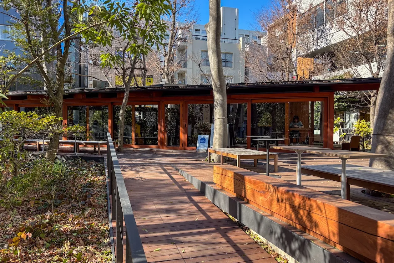 建物敷地内にはカフェがあり、建物2階にはワークラウンジも設置されています。充実した共用部分もこの建物の魅力の一つです。建物前の広場では定期的にイベントも開催されています。