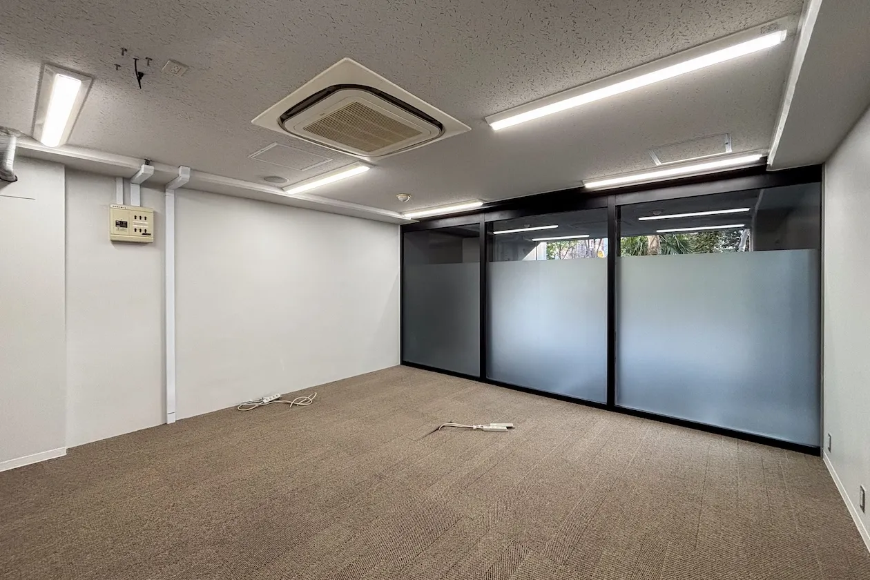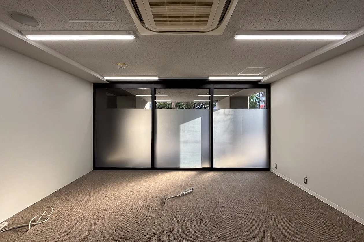 2023年に大規模なリノベーションが施されたビルは、100坪超の大型区画も有しますが、この記事でご紹介するのは、正面エントランスを入ってすぐ右側、7坪ほどの区画です。