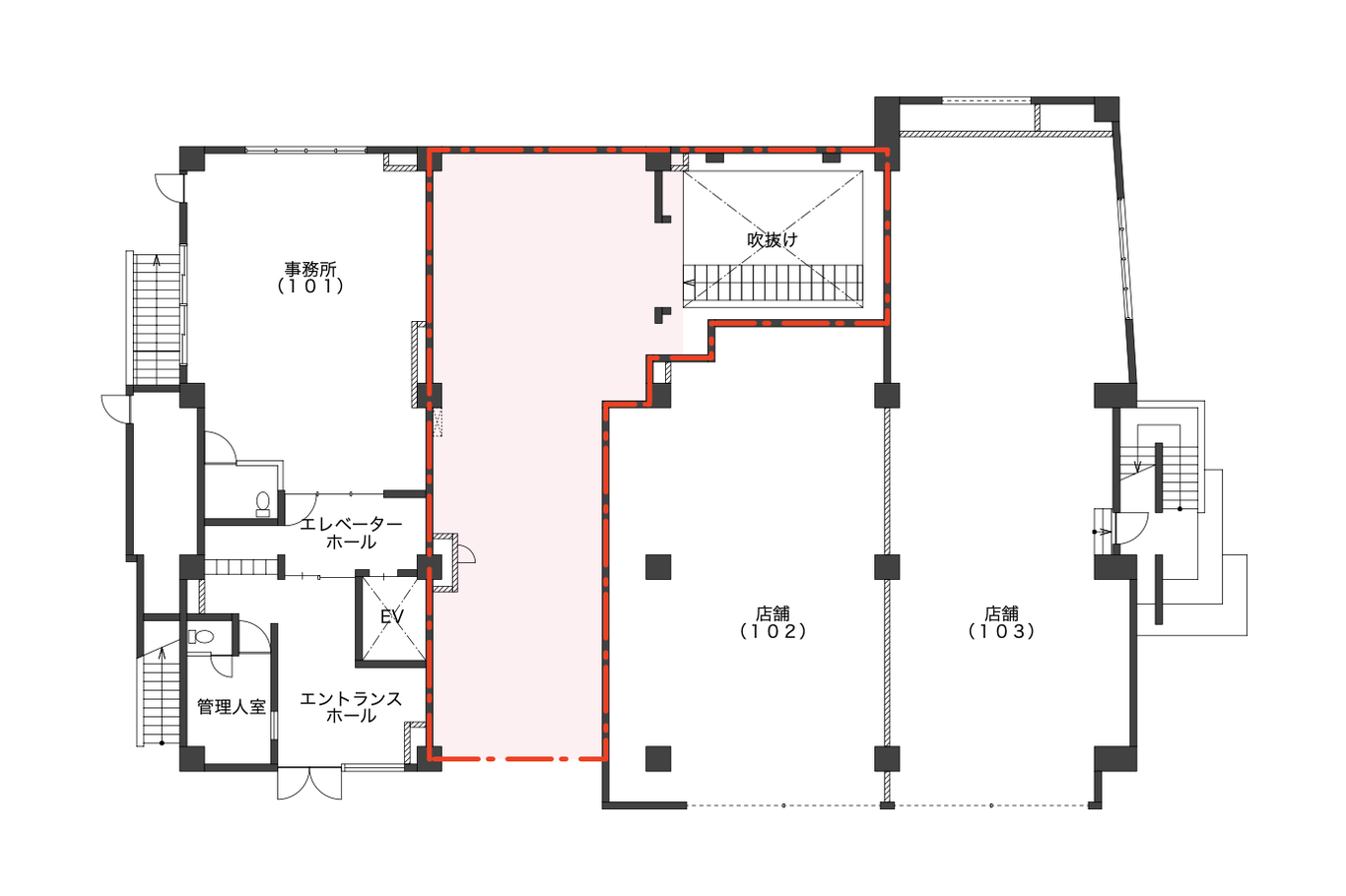 地下1階間取り図(赤枠内=募集区画)