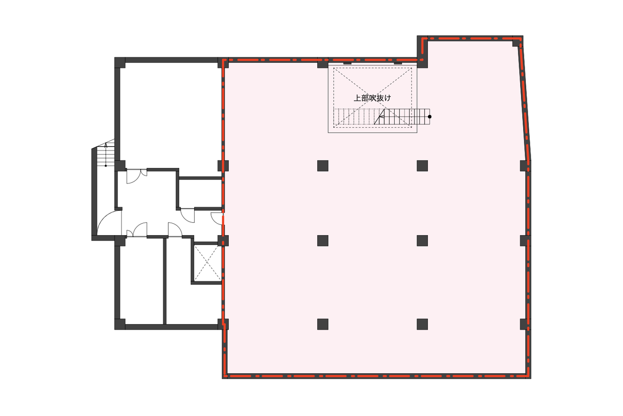 | その他共有事項 | 飲食不可 天井高 1階:2,600mm 地下1階:3,080mm 吹抜け部分:約7m 保証会社利用相談 火災保険加入必須 スケルトン引き渡し予定(現況:機械式駐車場設備あり) 間取り図記載の階段は現状設置されていません 原則賃貸借契約締結後、関係者と打ち合わせの上、解体工事含むA工事(貸主側による工事)を開始予定 |